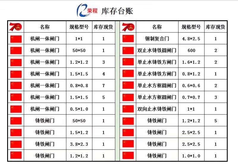 舉國同慶鑄鐵閘門是否有您需要的特價型號呢?國慶期間榮程水利從庫存抽出一批特價閘門答謝新老客戶,有需要的客戶抓緊訂購吧。