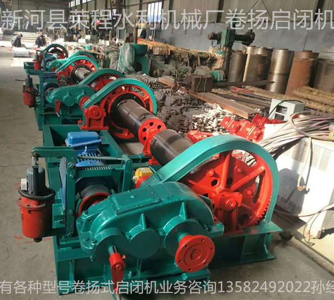 【卷揚啟閉機】生產(chǎn)廠家新河縣榮程水利機械專業(yè)生產(chǎn)銷售,卷揚啟閉機有4種規(guī)格型號:可以分為QPQ型普通卷揚啟閉機、QPK型快速卷揚啟閉機、QPG型高揚程卷揚啟閉機、QPT型臺車式卷揚啟閉機,QPM型門式卷揚啟閉機,QH型弧門卷揚啟閉機。卷揚啟閉機又分為:平門卷揚式啟閉機;弧形門卷揚式啟閉機;雙吊點卷揚式啟閉機;快速卷揚式啟閉機;移動式臺車啟閉機;雙吊點卷揚式啟閉機分為:集中驅(qū)動和單獨驅(qū)動兩種;卷揚式啟閉機手搖、電動兩用式規(guī)格分為:5噸、8噸、12噸、16噸、25噸;電動式規(guī)格分為:40噸、63噸、80噸、100噸、125噸、160噸、200噸,可以根據(jù)用戶要求設(shè)計,并能生產(chǎn)吊點和雙吊點卷揚式啟閉機。該機是一種水利工程專用機械,廣泛用于水利工程閘門的啟閉,是農(nóng)田灌溉、水產(chǎn)養(yǎng)殖、農(nóng)業(yè)經(jīng)濟開發(fā)區(qū)、污水處理廠、水利發(fā)電站、水庫、水閘、堤壩、隧道、管 道等進水、退水閘的配套機械,山區(qū)、平原有、無電地區(qū)均可使用。