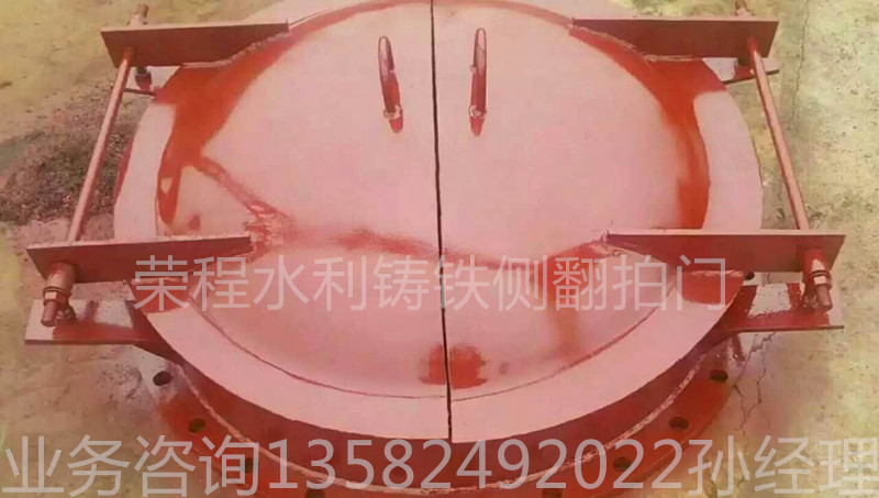 鑄鐵拍門由四個(gè)部分組成:閥座(閥體)、閥板、密封環(huán)和鉸鏈。僅用于單向流動(dòng)的圓形和方形出口結(jié)構(gòu)緊湊可靠,并且不需要人力來操作來自水源壓力的打開和關(guān)閉力。當(dāng)襟翼門內(nèi)的水壓大于襟翼門外的壓力時(shí),打開,否則關(guān)閉。